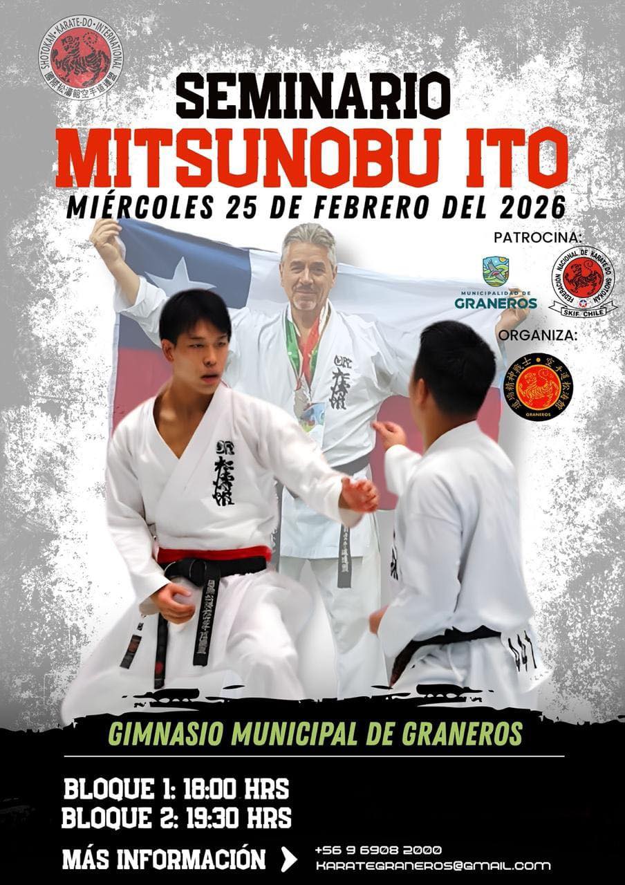Graneros será escenario de un importante encuentro internacional de artes marciales. Hoy miércoles 25 de febrero, el Gimnasio Municipal de la comuna acogerá el Seminario Mitsunobu Ito, una instancia formativa que reunirá a karatecas de distintos puntos de la región para perfeccionar técnicas y profundizar en el karate tradicional.