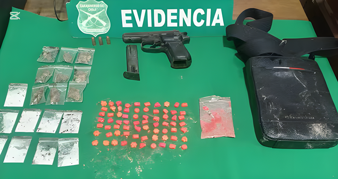 Al dar con el bolso, los funcionarios hallaron un arma de fuego con munición, además de una cantidad significativa de pastillas de ketamina y bolsas de nylon transparente con pasta base, elementos asociados al microtráfico.