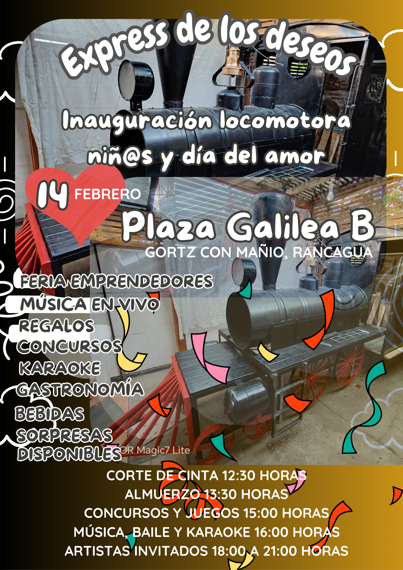 Uno de los momentos centrales del evento será la inauguración de la locomotora infantil “Express de los deseos”, programada para las 12:30 horas. Se trata de un nuevo juego instalado en la plaza, confeccionado artesanalmente en metal gracias al aporte financiero de vecinos y vecinas, trabajo que se extendió desde abril hasta la fecha y que busca entregar un espacio recreativo permanente para niños y niñas del sector.