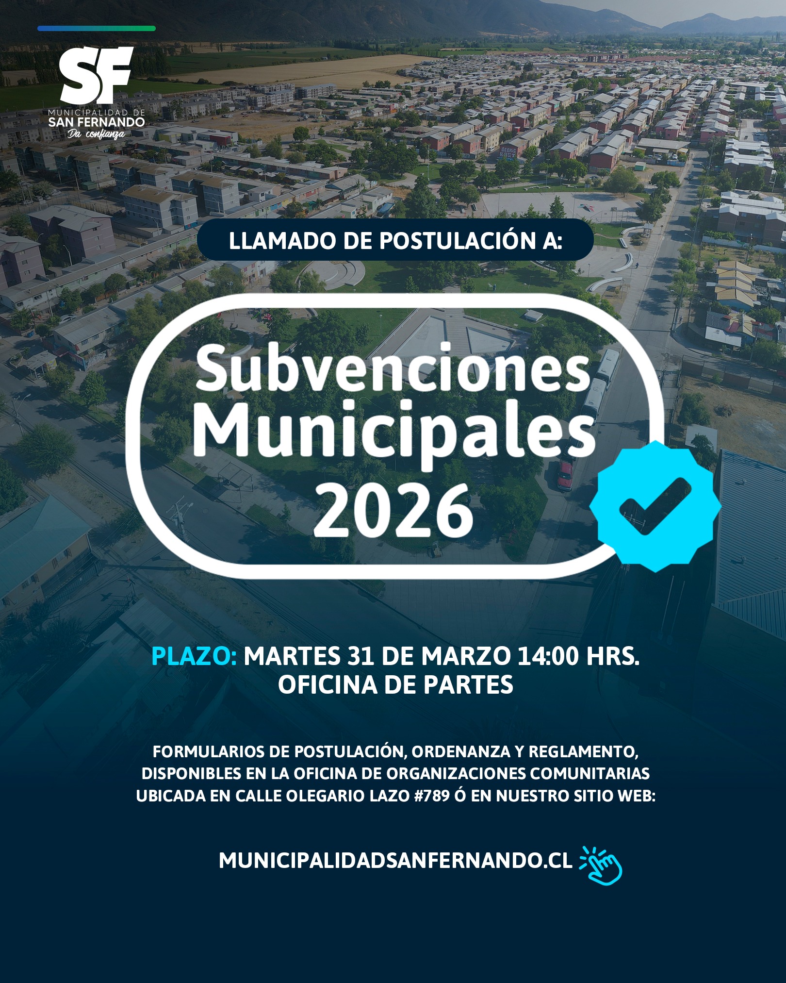 La municipalidad de San Fernando abrió el proceso de postulación a las Subvenciones Municipales 2026, iniciativa destinada a apoyar proyectos impulsados por organizaciones sociales de la comuna.
