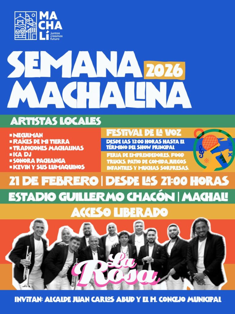 Para el sábado 21, la parrilla artística incluirá a Neculman, Raíces de Mi Tierra, Tradiciones Machalinas, Ica DJ, Sonora Pachanga y Kevin y sus Lumaquinos. El espectáculo principal será protagonizado por la banda argentina Grupo La Rosa, referente de la cumbia romántica latinoamericana.