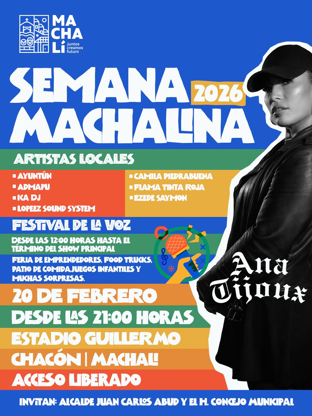 Con una destacada presencia de talentos locales y artistas de nivel nacional e internacional, la comuna de Machalí se prepara para celebrar una nueva versión de la Semana Machalina 2026, actividad que se desarrollará el viernes 20 y sábado 21 de febrero en el Estadio Guillermo Chacón.