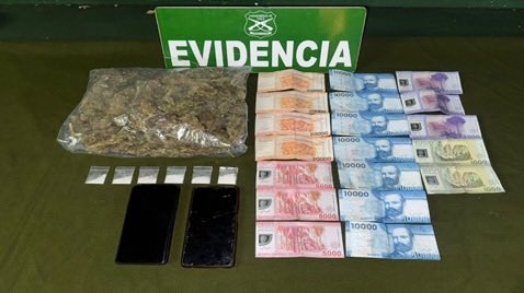 En medio del control, los funcionarios detectaron la presencia de sustancias ilícitas y dinero en efectivo al interior del automóvil, lo que motivó la detención de los tres ocupantes.