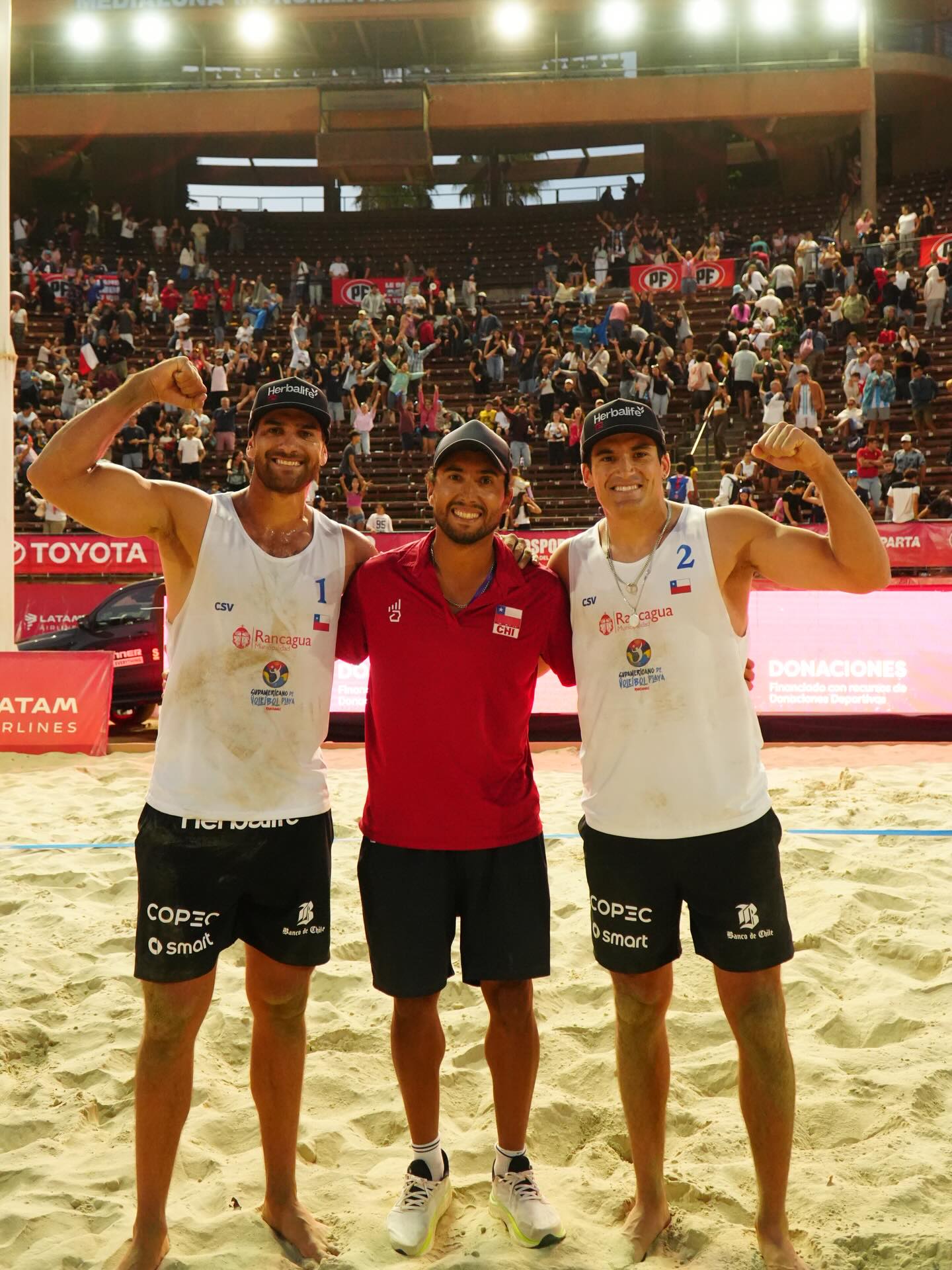 Chile tendrá una final completamente nacional en el Sudamericano de Vóleibol Playa que se disputa en la Medialuna Monumental, luego de que las duplas de Marco y Esteban Grimalt y Noé Aravena / Vicente Zavala avanzaran al duelo por el título del torneo.