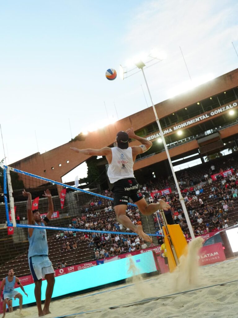 Los primos Marco y Esteban Grimalt lograron su paso a la final tras imponerse por 2-0 a la dupla argentina Amieva / Bueno, con parciales de 21-17 y 21-18, en un partido que encendió el entusiasmo del público presente en la Medialuna Monumental.