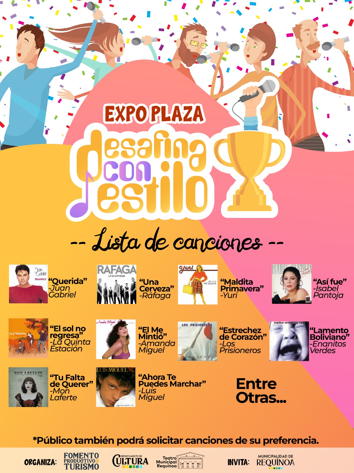 Una tarde marcada por la música, el emprendimiento local y la participación ciudadana se vivirá este viernes 27 de marzo en la Plaza de Armas de Requínoa, con la realización de la Expo Plaza “Desafina con Estilo”, evento que incluirá un karaoke abierto para niños y adultos.