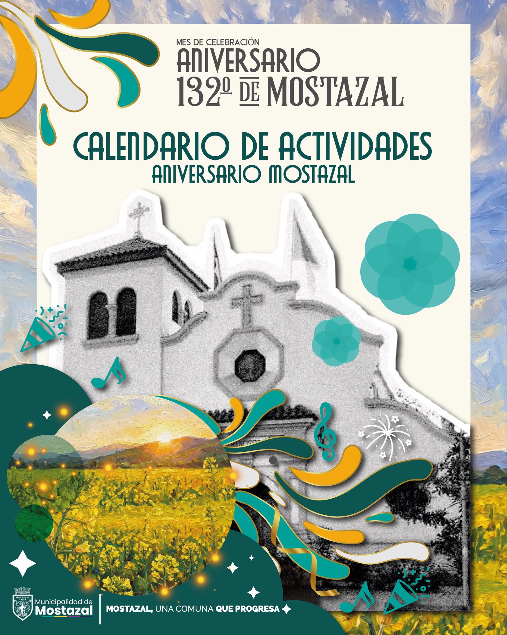 La celebración también contempla el Carnaval Andino, programado para el 20 de marzo en las calles de Mostazal, además del desfile aniversario, que se llevará a cabo el 21 de marzo en el Estadio Municipal con la participación de organizaciones y establecimientos educacionales.