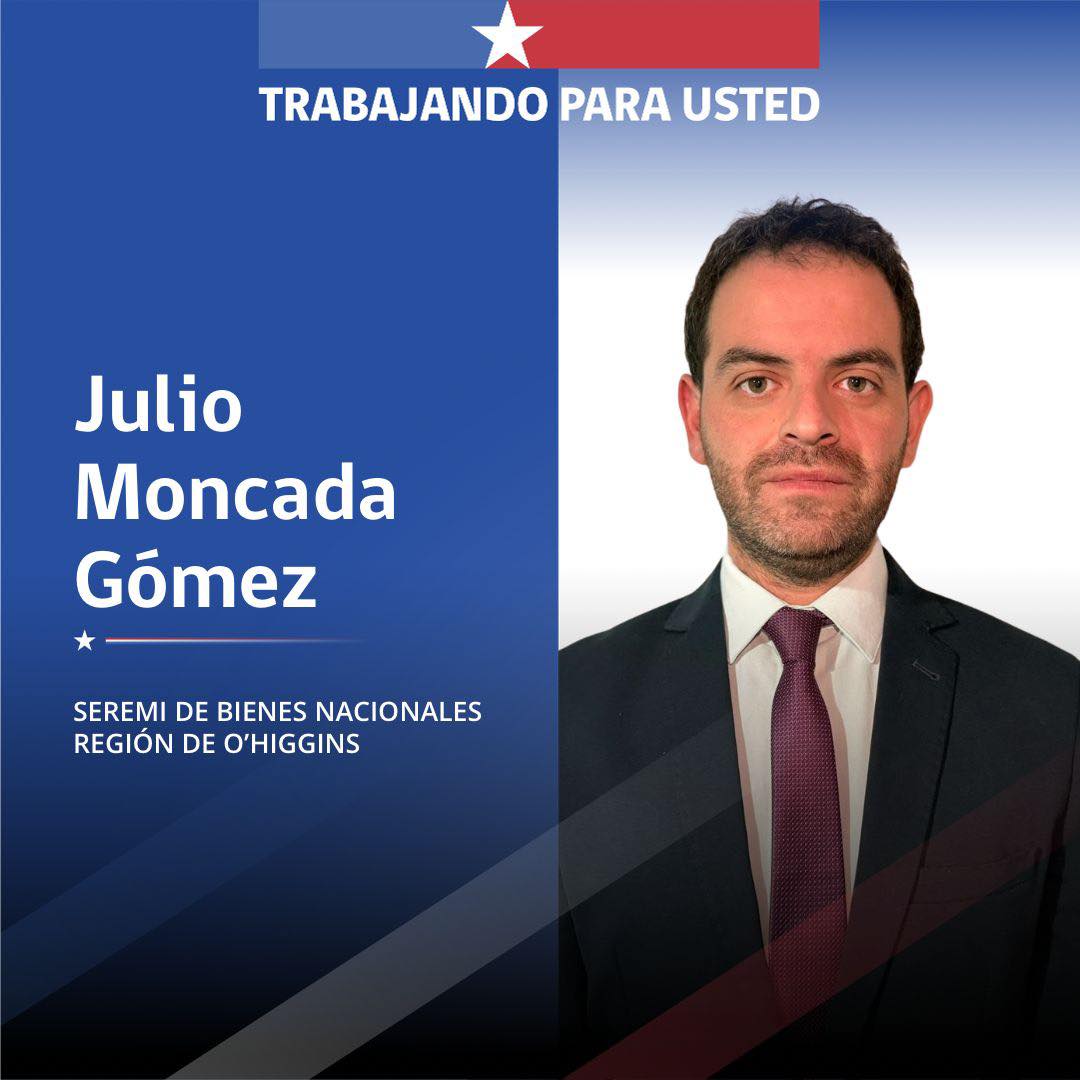 Durante la jornada de este viernes 27 de marzo se oficializó el nombramiento de Julio Ignacio Moncada Gómez como nuevo seremi de Bienes Nacionales de la Región de O’Higgins, en el marco del inicio del gobierno del Presidente José Antonio Kast.