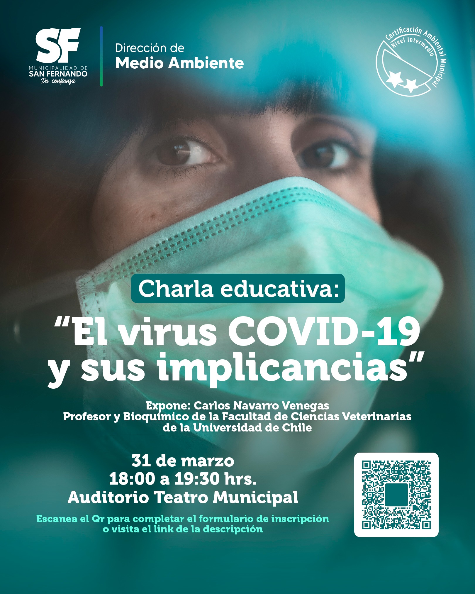 La Municipalidad de San Fernando realizará el próximo 31 de marzo, en el auditorio del Teatro Municipal, la charla educativa “El Virus Covid-19 y sus implicancias”, instancia educativa y gratuita para todas las vecinas y vecinos de la comuna.