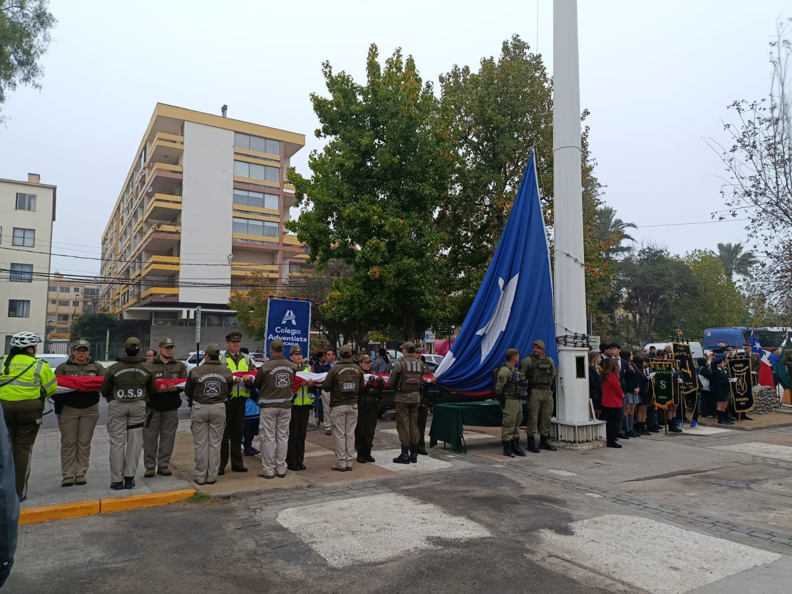 En el marco del 99° aniversario de Carabineros de Chile, autoridades regionales, comunales y representantes internacionales participaron en el izamiento de la Gran Bandera en la Plaza de los Héroes de Rancagua.