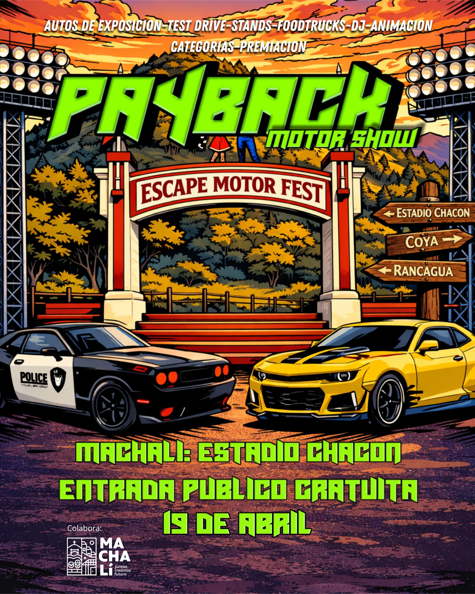 La Municipalidad de Machalí informó que el próximo domingo 19 de abril el Estadio Chacón será escenario del “Payback Motor Show”, un evento gratuito que reunirá a fanáticos del mundo tuerca con una variada programación.