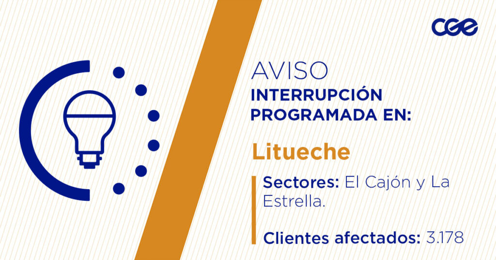 La Compañía General de Electricidad (CGE) informó que para el próximo jueves 2 de abril se realizarán cortes programados del suministro eléctrico en la comuna de Litueche, esto debido a trabajos de mejoramiento en la red.