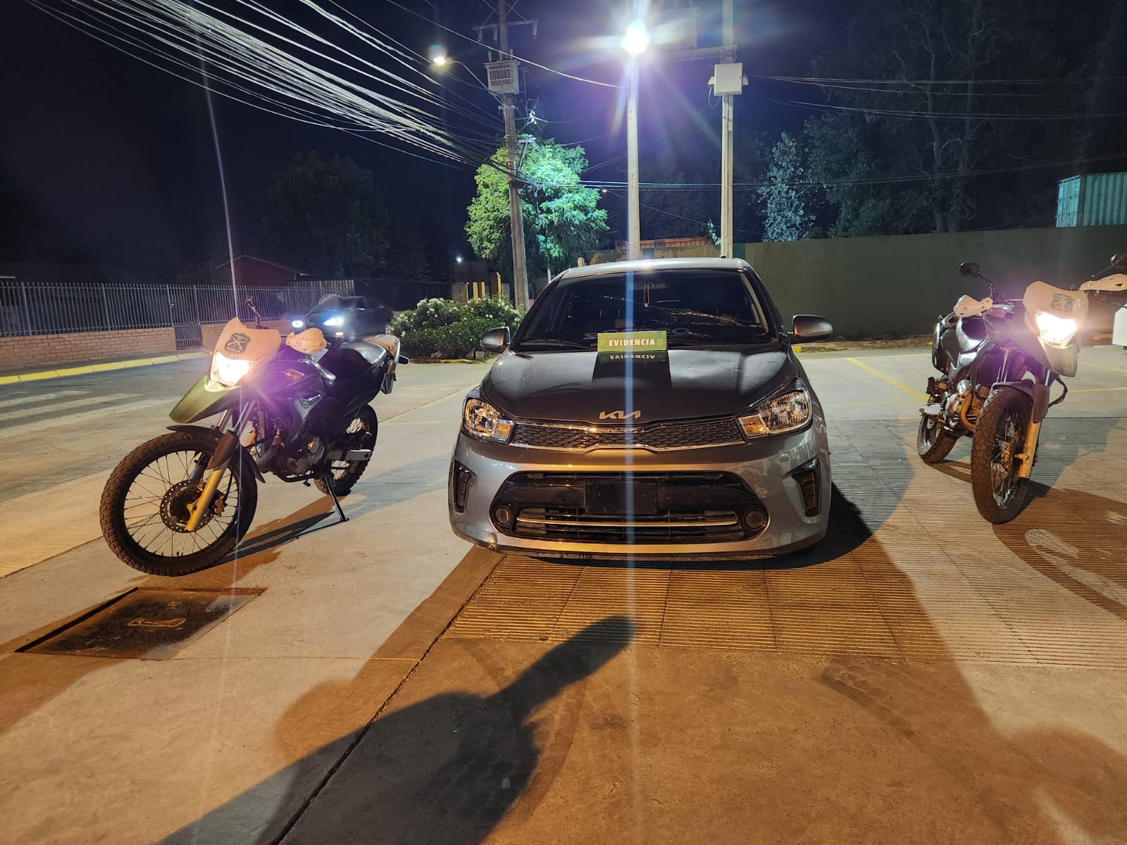 Según lo consignado por personal policial, el sujeto se desplazaba en un automóvil marca Kia, modelo Soluto el cual mantenía sus placas patentes de fabricación artesanal, número de chasis correspondiente a otro vehículo y documentación falsificada.