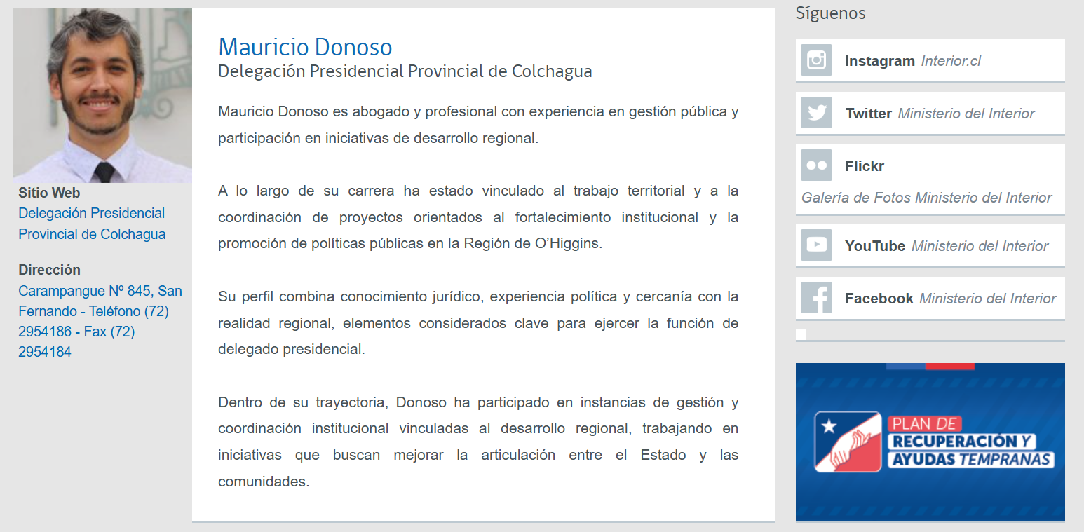 El delegado presidencial provincial de Colchagua Mauricio Donoso Pavez se vio en la necesidad de detener la agenda administrativa para abordar una imprecisión que circulaba en los registros oficiales del gobierno.