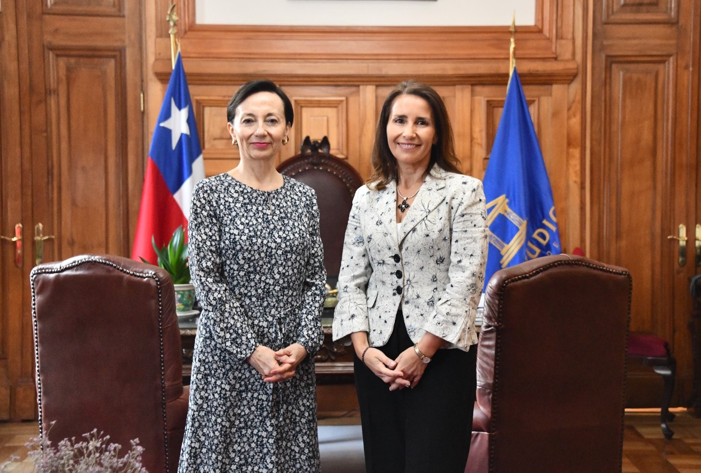 La presidenta de la Corte de Apelaciones de Rancagua, Marcela de Orué, sostuvo hoy una reunión protocolar con la presidenta de la Corte Suprema, Gloria Ana Chevesich, donde abordaron temas clave para la jurisdicción y el funcionamiento del sistema judicial en O’Higgins.
