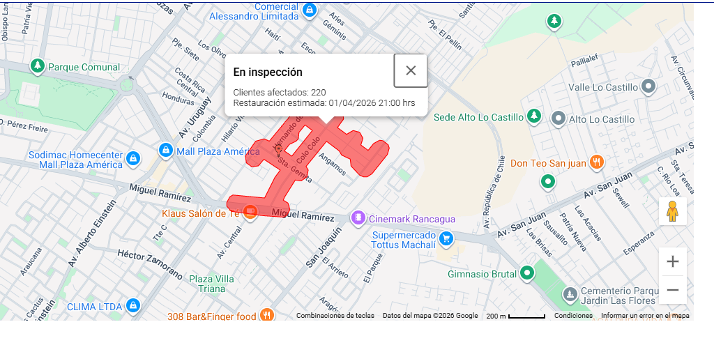 A raíz del impacto, la empresa CGE reportó que un total de 220 hogares quedaron sin suministro eléctrico en el sector afectado.