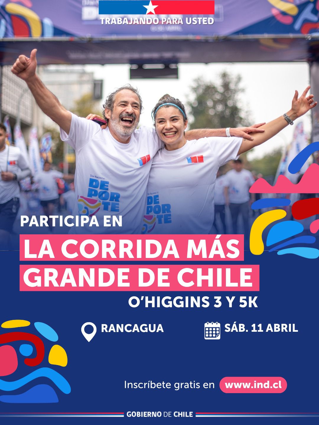 En la Región de O’Higgins, el evento tendrá como punto de encuentro la comuna de Rancagua, donde se espera la participación de más de tres mil personas de distintas edades. La actividad se llevará a cabo en el Complejo Deportivo Hermógenes Lizana, con inicio programado para las 9:00 horas, aunque las actividades comenzarían desde las 8:00 de la mañana.
